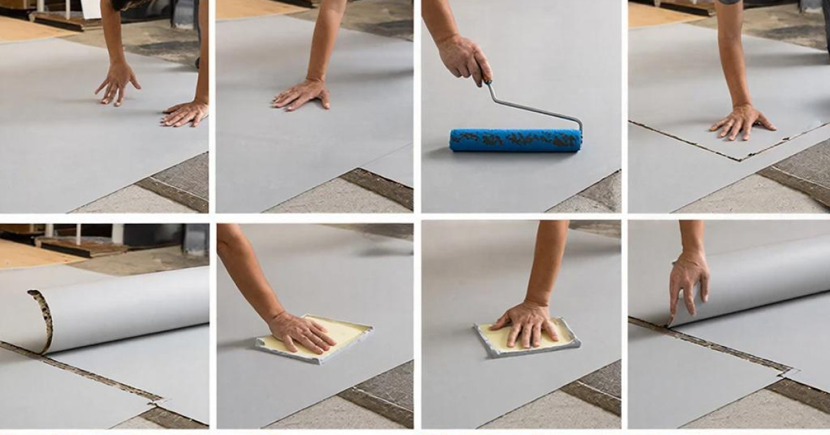 • Когда покрытие приклеится, прокатите его тяжелыми специальными валиками, можно притереть при помощи пробковой доски. Это делают для полного убирания пузырей и равномерного расположения клея непосредственно под покрытием.